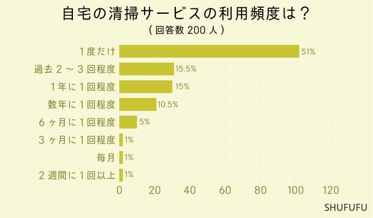 「ハウスクリーニングなどの自宅の清掃サービスの利用頻度は?」との問いに対して半数以上が「1度だけ(51%)」との回答でした。