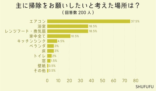 主に掃除をお願いしたいと考えた場所を調査した結果、1位は「エアコン(37.5%)」でした。