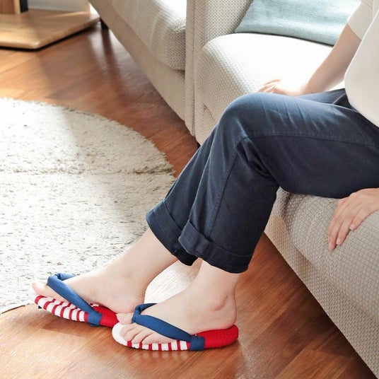 室内履きと言えばスリッパですが、スリッパは足先にひっかけて引きずるように歩くので、足首は動かず筋肉を使いません。布ぞうりは足の指で鼻緒を挟んで履くので、自然と足の筋肉を使います。