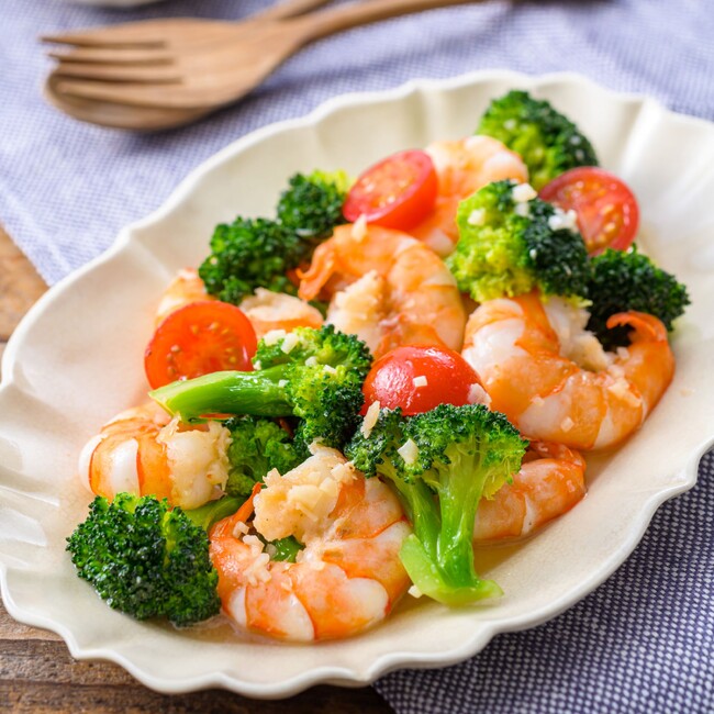 詳細 えびとブロッコリーを合わせて、ガーリックバターでさっと仕上げ。エビの旨味とバター、ガーリックの香りが美味しい1品!