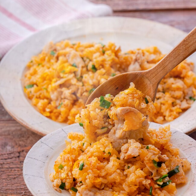 詳細 忙しいときにもパパッとつくれる、栄養満点の豚キムチ炒飯。パラパラに仕上げるコツは、ご飯を卵と合わせたあとに刻むように混ぜること。追いキムチもおすすめです。