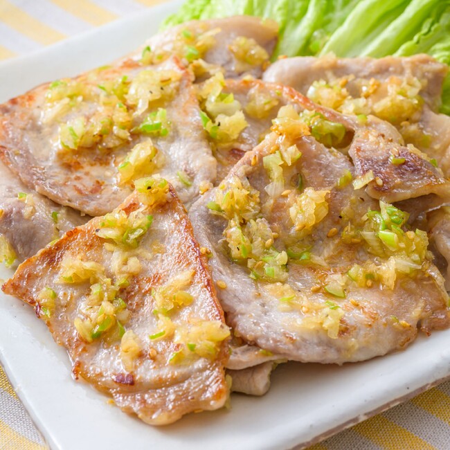 詳細 生姜焼き用の豚肉をねぎ塩だれ焼きに。刻んだねぎとしょうがをごま油ベースの味と絡めてさっと焼いて。冷めても美味しいからお弁当にもいい!丼にしても美味しいです。