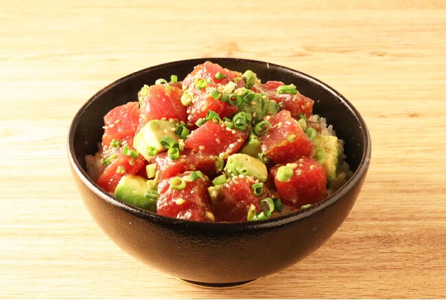 詳細 昆布しょうゆで仕上げるうま味のつまったアボカドとまぐろのポキ丼。濃厚なおいしさで相性ぴったりな組み合わせです。