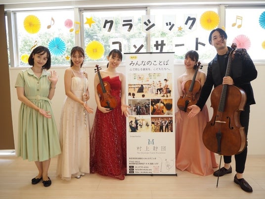 音楽で子どもの心を育てる特定非営利活動法人みんなのことば(所在地:東京都新宿区、代表:渡邊悠子、以下:NPO法人みんなのことば)は、家庭環境や教育環境に関わらず、ひとりでも多くの子どもたちに五感を使い心を育てる“体験の機会”を届けることを目的とし、一般財団法人村上財団の支援による無料コンサートに応募し、審査の結果採択となった施設へ「みんなのコンサート」お届けを開始しました。
