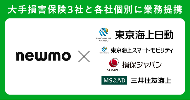 newmo株式会社(東京都港区、代表取締役 青柳直樹、以下newmo)は、東京海上日動火災保険株式会社(東京海上スマートモビリティ株式会社を含む)、損害保険ジャパン株式会社、三井住友海上火災保険株式会社の3社と、ライドシェア事業に関する保険商品・サービスおよび安全促進への取り組みの検討に係る個別業務提携契約を各社と締結することを合意しました。