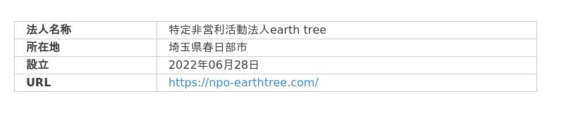 特定非営利活動法人earth tree