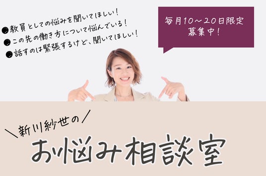教員人生の終わりが見えてきた50代の先生方。学校では頼られる立場でいらっしゃることでしょう。自分が何か相談したい時に相談相手がいないのがつらい・・・という声も届いています。