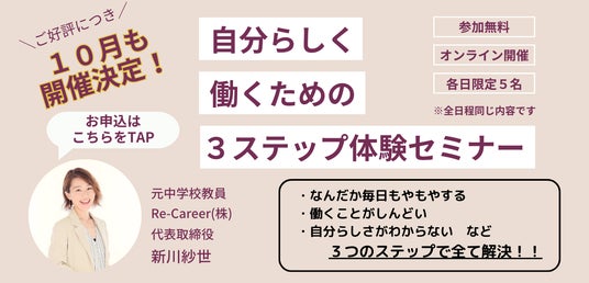 テーマ:「<自分らしく働くための3ステップ無料セミナー>」
