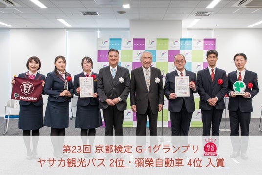 第23回 京都・観光文化検定試験(以下:京都検定) G-1グランプリ 表彰式が2024年2月26日に開催され、彌榮自動車株式会社(ヤサカグループ本社、以下:彌榮自動車)が4位、ヤサカ観光バス株式会社(以下:ヤサカ観光バス)が第2位に入賞し、受賞メンバーが出席したことをお知らせいたします。