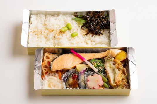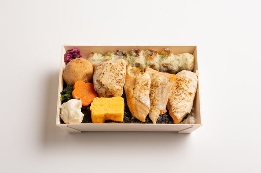 ■特徴:一段目には絶妙甘辛タレで焼き上げ旨みたっぷり銀鮭西京焼きと、彩り豊かで飽きの来ない惣菜の数々。二段目には可愛らしく飾られたこだわりのごはん。「蓋を開けた瞬間嬉しくなる」にとことんこだわったお弁当です。