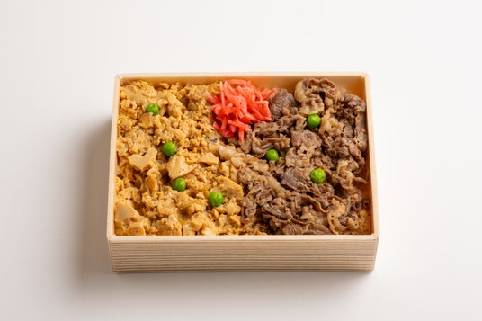 ■特徴:肉の旨みが凝縮したタレでふんわりと仕上げた玉子と玉ねぎを、秘伝の割り下 で煮上げた黒毛和牛とともにご飯の上に盛り付けました。旨味たっぷりの牛肉 と玉子の優しい味わいが幅広い年齢層の方に人気のお弁当です。