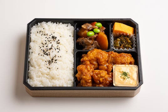 ■特徴:塚田農場の人気メニューをお弁当仕様にアレンジした人気No.1。 ご飯が進む甘酢の味付けと、オリジナル卵をたっぷり使用したタルタルソースのチキン南蛮をメインに、肉じゃが、高菜明太、玉子焼きも主役級のおいしさ。