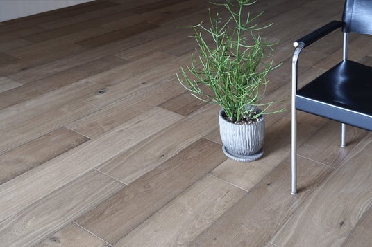 着色ではない「燻蒸処理」により、時を経て色褪せたような落ち着いた色味に仕上げたフローリングです。表面の立体的なブラッシングによる凹凸が深みのある陰影を作り出します。