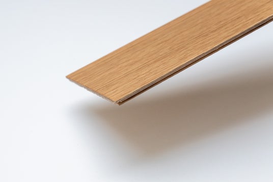 「リフォームフローリング」は、ボンド等の接着剤で施工できる天然木を使った上貼り用フローリングで、床暖房に対応しているのが特徴です。床暖房の熱を伝えられる6.5mmという薄さで、表面に1mmの天然木のスライスを使っています。マットな質感に仕上げているので、薄くてもしっかり本物の木の質感を感じることができます。