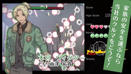 「CMが邪魔ですか?」自社広告を弾幕にして飛ばすボス達VS見たくない広告を撃ち落とす主人公の縦スクロール2Dシューティング◆イケボのイケメンしか登場せず初心者向け