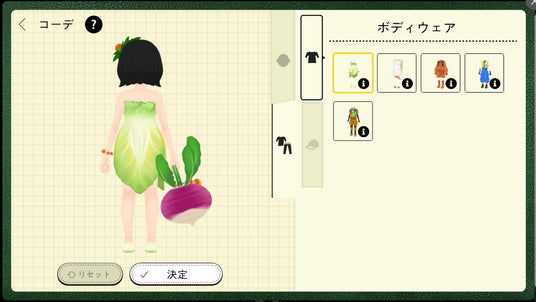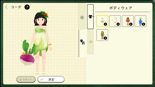 また「EARTH MART」に入場すると出てくるショッピングカート内に、各コーナーに近づくことで得られる食料・食材を指定の数だけ集めると、2種類のコーディネートを取得することができます。