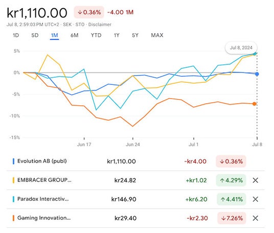 独自調査で明らかにする、北欧ナスダックの主要ゲーミング銘柄の株価推移