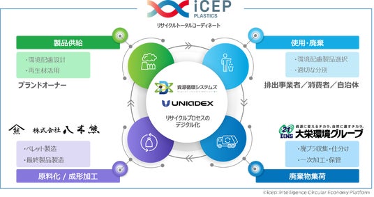 大栄環境株式会社・資源循環システムズ株式会社・株式会社八木熊・ユニアデックス株式会社の4社が運営するiCEP PLASTICSリサイクルトータルコーディネートサービス