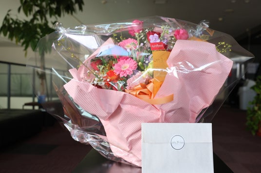 4口だけだったのですが、綺麗なアレンジメントが届き、当日も飾ってくださっていました。日頃からたいへんお世話になっているので、こういう形でメッセージで伝えることができて良かったです!