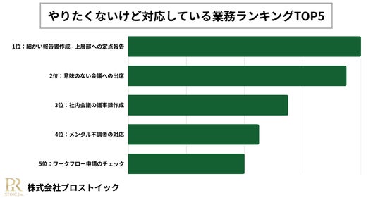 企業の現場管理職を中心に支援をする株式会社プロストイック(本社:東京都港区)は、企業の管理職を対象に「やりたくないけど、やらなければいけない・対応している業務」に関する調査を実施しました。この調査結果から、企業の管理職が抱える業務の実態・本音などが明らかになりました。