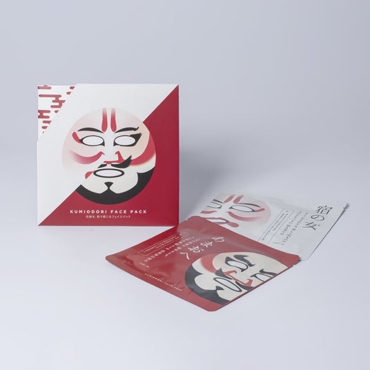 沖縄の伝統芸能組踊の化粧がデザインされたフェイスパック。美容液には役者の化粧下地であるびんつけ油の素材、モクロウでつくられました。沖縄のお土産としてはもちろん、ギフトや結婚式の引き出物としても人気。2024年より新価格で販売しております。