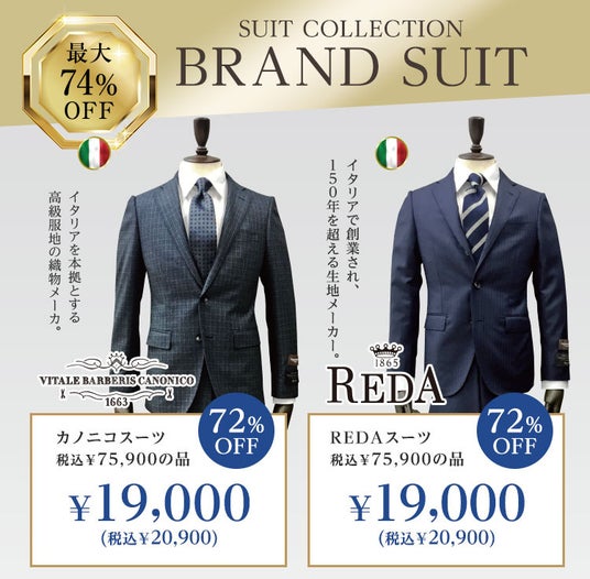 ▼ブランドスーツも最大74%OFF!