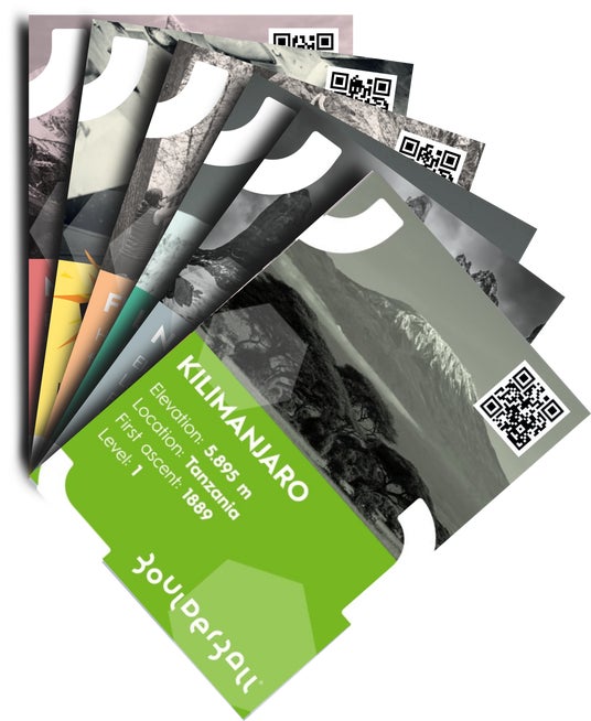 【Boulderball】はボルダリング初心者の子どもから、プロを目指す上級者までテクニックを磨けるように、世界の名峰を冠した13種類のルートカードをご用意。