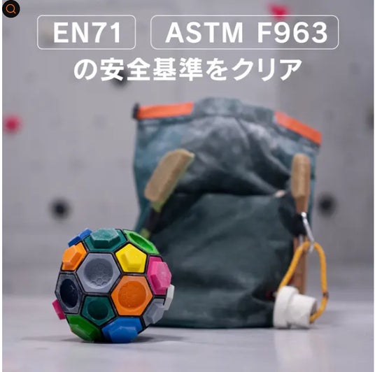 また【Boulderball】は玩具等の素材に有害物質が含まれていないことなどを証明するEUのEN71、米国のASTM F963の安全基準をクリア。さらに【Boulderball】で使っている素材は全てリサイクルが可能なサスティナブルな商品です。