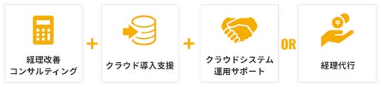 クラウドシステム導入と経理代行により経理業務を効率化する支援サービスです。