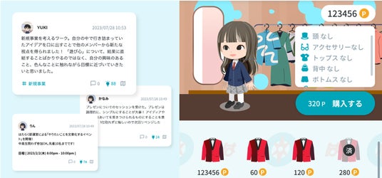 さらに、「はたらく部」に入部すると使える専用アプリでは、自分の成長を可視化したり、行動を記録することができます。日々の行動やミッションをクリアすることで、自分のアバターも一緒に進化します。アバターは、セッションやアプリ内での活動がポイントとなり、着せ替えなどを楽しむことができます。
