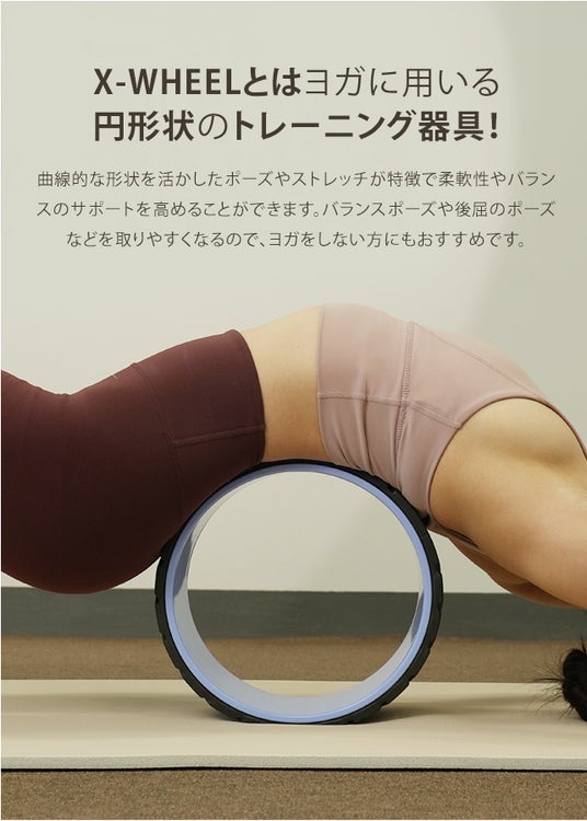 ヨガの補助器具として使われるXホイールは、バランスポーズや後屈のポーズなど、難しいヨガのポーズを手助けしてくれます。