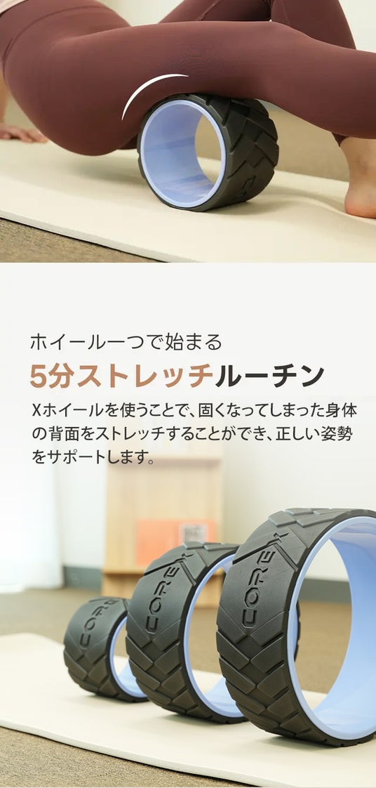 ストレッチ効果が高まるXホイールを使うことで、固くなってしまった身体の細部までしっかりとストレッチをすることで、姿勢をサポートすることができます。