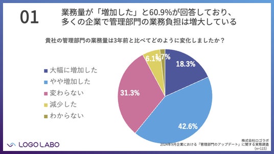 ■ 01:管理部門の業務量が増加している企業は、約61%