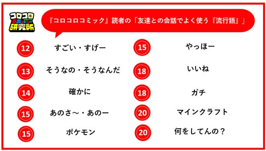 今回は、夏休みも終わって新学期がスタートしたということで、『コロコロコミック』2024年8月号(7/12発売)で男子小学生を中心とした読者1000名を対象に実施した「読者アンケート」の中から、学校で友達との会話でよく使う「流行語」や、あったらいいなと思う「夢の授業」などに関する調査結果を紹介します。