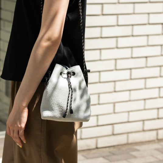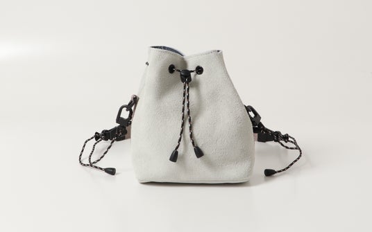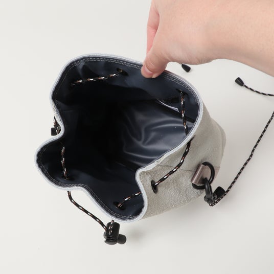 ■防水スウェードを使ったコンパクトな巾着ショルダー。