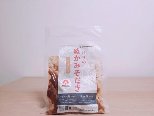 開発ストーリー:私たちの海では、アイゴやイスズミ、ムラサキウニの増加により磯焼けが深刻化し、名産のイカの漁獲量が減少しています。昔は食用されていたというアイゴに着目し、地元の伝統的な「ぬかみそ炊き」と組み合わせることで、アイゴの新たな魅力を発掘し、地域に根ざした商品として展開したいと考えています。