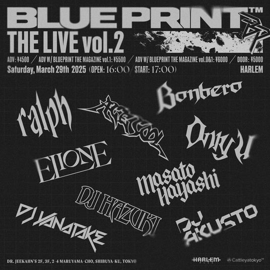 HIPHOPにフォーカスしたマルチモーダルなプロジェクトである『BLUEPRINT(TM)』が主催し、2025年3月29日(土)にHARLEMで開催される『BLUEPRINT(TM) THE LIVE vol.2』の全出演者が公開になりました。