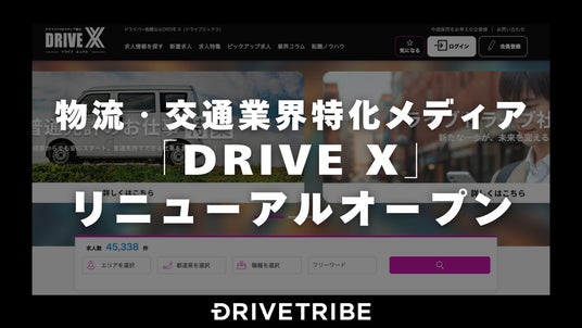 ドライバーに特化した人材サービスを行う株式会社ドライブトライブ(本社:東京都渋谷区、代表:鷹野 雄太、以下当社)は、ドライバーHRメディア「DRIVE X(ドライブエックス)」を全面リニューアルオープンしたことをお知らせいたします。これまで求人情報を中心に展開してきた「DRIVE X」を、物流・交通業界に特化した“求人×情報”のハイブリッドメディアへ刷新し、ドライバーや求職者だけでなく、企業や業界関係者にとっても価値のある情報プラットフォームを目指します。https://drive-x.jp/