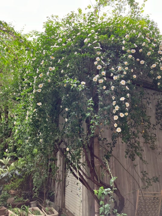蜜源のひとつ、能楽堂敷地内に咲く和薔薇