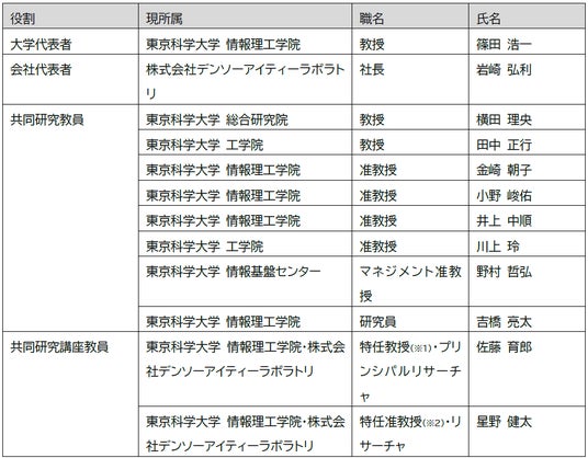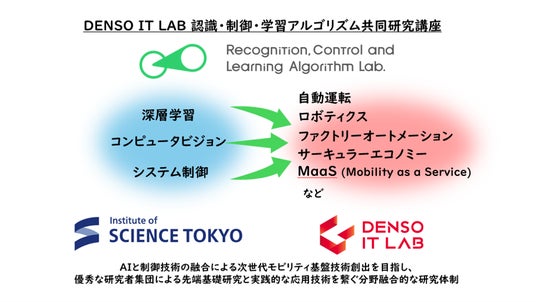 クルマとモビリティ社会全体の未来を見据え、「種」となる先端基礎研究を行う株式会社デンソーアイティーラボラトリ(本社:東京都港区 代表取締役社長:岩崎 弘利、以下 デンソーITLAB)と東京科学大学(理事長:大竹尚登)は、革新的なAI・制御技術の融合によるモビリティ基盤創出に向けた連携および共同研究に関する協定を締結し、2025年4月1日に東京科学大学情報理工学院において「DENSO IT LAB 認識・制御・学習アルゴリズム共同研究講座」を開設します。本共同研究講座では、これまで培ってきた「認識」と「学習」の技術に加え、「制御」技術を融合した分野融合型の共同研究を促進し、次世代モビリティの技術基盤となる自動運転・ロボティクス・工場自動化・循環経済・MaaSなどに有用な認識・制御・学習技術の研究および開発を目指します。