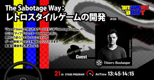 『Sea of Stars』で知られるゲームスタジオ「Sabotage Studio」のクリエイティブディレクターBoulanger氏に、現代にうまくハマるレトロスタイルのゲーム開発プロセスを解説していただきます! 貴重な機会をお見逃しなく!