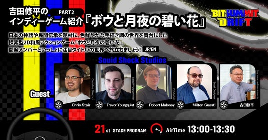 日本の神話や民間伝承を題材に、色鮮やかな手描き調の世界を舞台にした探索型2D和風アクションゲーム『ボウと月夜の碧い花』。開発メンバーといっしょに注目タイトルの世界へと旅立ちましょう!