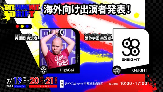 また、「BitSummit Drift」の情報を英語圏や中華圏の方々にお届けするブースでは、HighGaiさん(英語圏)とG-EIGHTさん(中国語圏)がそれぞれご出演いたします!