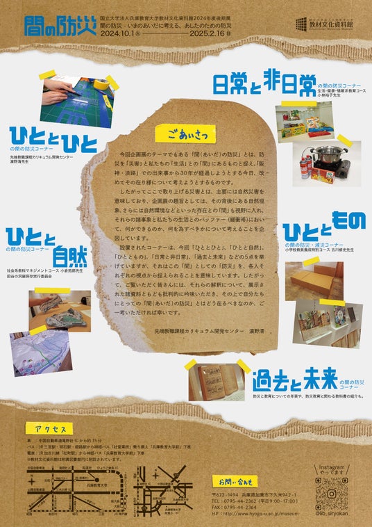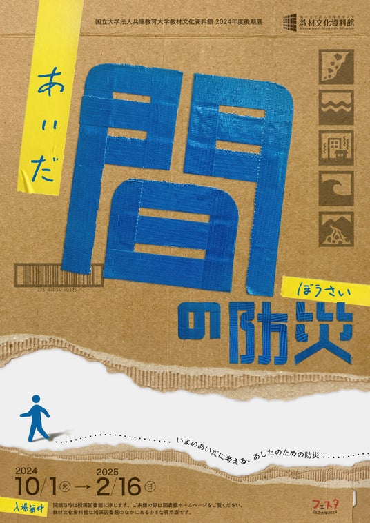 兵庫教育大学教材文化資料館では、令和6(2024)年10月1日(火)から令和7(2025)年2月16日(日)まで、今年度後期展「間の防災-いまのあいだに考える、あしたのための防災-」を開催しています。