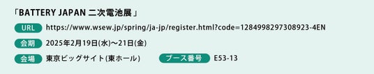 展示会のお知らせ「BATTERY JAPAN 二次電池展」への出展のお知らせ