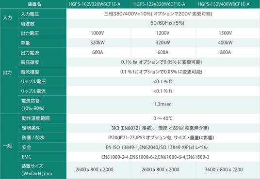 双方向直流電源製品仕様