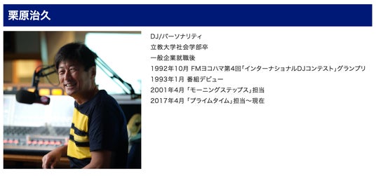 1992年にFMヨコハマのDJコンテストで優勝しラジオ業界へ。2001年からはFMヨコハマの『MORNING STEPS』を、2017年から『PRIME TIME』を担当。ラジオDJ、クラブDJ、司会など広く活躍する。