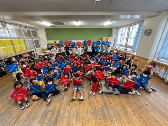 本事業は、これまでに累計8,000校以上の支援実績を持つ教育支援事業です。 今年度は700校に、副読本・用具(フラッグとベルト)・先生用ガイドがセットになったパッケージを助成いたします。
