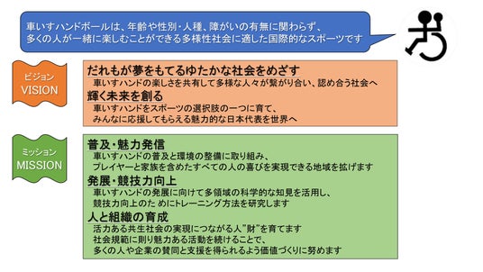 - 日本車椅子ハンドボール連盟は、この国際大会の経験を通し、当連盟のビジョンである「誰もが夢をもてるゆたかな社会」そして「輝く未来」にむけてさらに精進いたします。