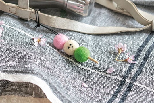 さまざまな食べ物をモチーフとしたウールフェルトのキーチャーム。ウインナー、おにぎりたらこ、アメリカンドッグ、三色団子、プリンと、5種類展開です。